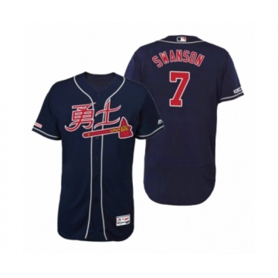 Men's 2019 Asian Heritage Month Atlanta Braves #7 Dansby Swanson Navy Chinese Flex Base Jersey