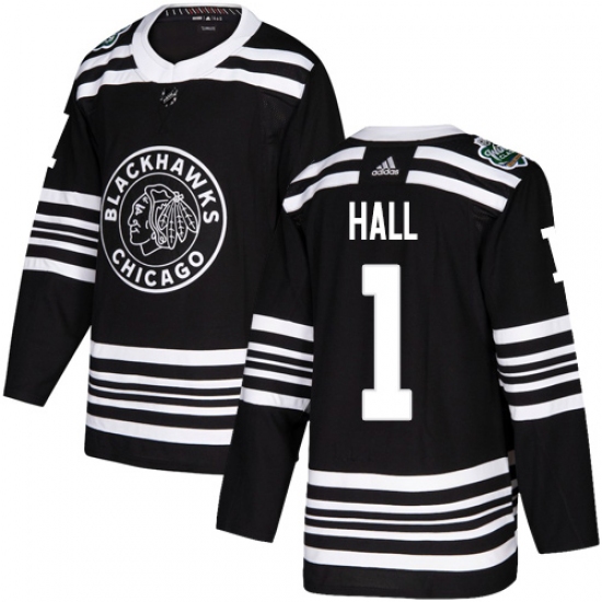 Men's Adidas Chicago Blackhawks #1 Glenn Hall Authentic Black 2019 Winter Classic NHL Jersey