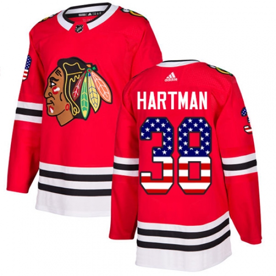 Home>NHL>Chicago Blackhawks>Ryan Hartman>Men's Adidas Chicago Blackhawks #38 Ryan Hartman Authentic Red USA Flag Fashion NHL Jersey