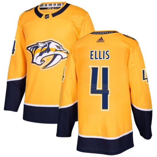 Home>NHL>Nashville Predators>Ryan Ellis>Men's Adidas Nashville Predators #4 Ryan Ellis Authentic Gold Home NHL Jersey