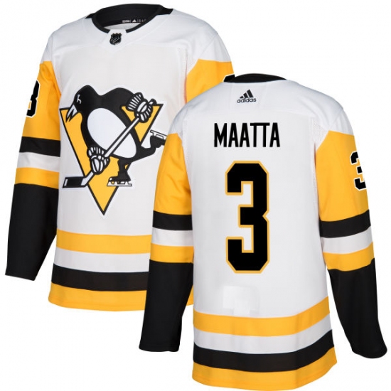 Men's Adidas Pittsburgh Penguins #3 Olli Maatta Authentic White Away NHL Jersey