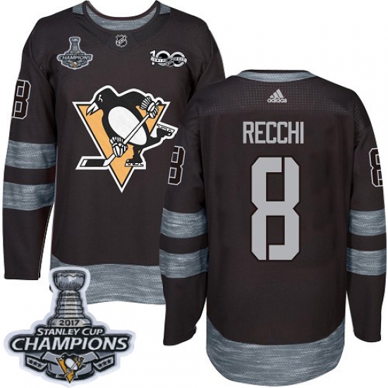 Men's Adidas Pittsburgh Penguins #8 Mark Recchi Premier Black 1917-2017 100th Anniversary 2017 Stanley Cup Champions NHL Jersey