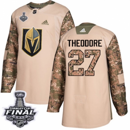 Men's Adidas Vegas Golden Knights #27 Shea Theodore Authentic Camo Veterans Day Practice 2018 Stanley Cup Final NHL Jersey