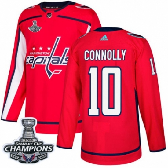 Men's Adidas Washington Capitals #10 Brett Connolly Premier Red Home 2018 Stanley Cup Final Champions NHL Jersey