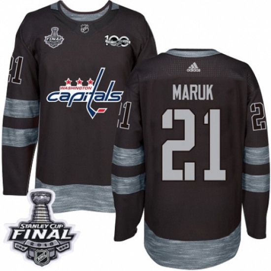 Men's Adidas Washington Capitals #21 Dennis Maruk Authentic Black 1917-2017 100th Anniversary 2018 Stanley Cup Final NHL Jersey