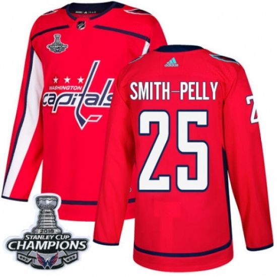Men's Adidas Washington Capitals #25 Devante Smith-Pelly Authentic Red Home 2018 Stanley Cup Final Champions NHL Jersey