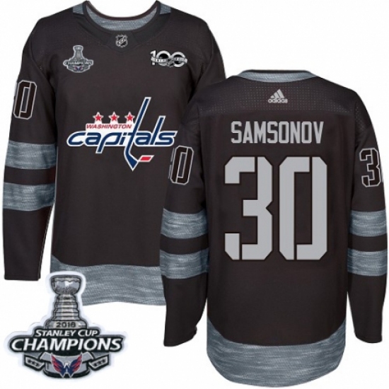 >Men's Adidas Washington Capitals #30 Ilya Samsonov Authentic Black 1917-2017 100th Anniversary 2018 Stanley Cup Final Champions NHL Jersey
