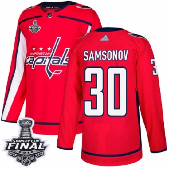 Men's Adidas Washington Capitals #30 Ilya Samsonov Authentic Red Home 2018 Stanley Cup Final NHL Jersey