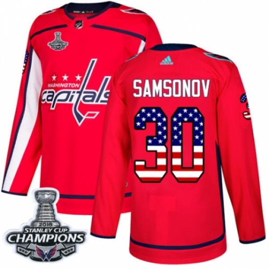 Men's Adidas Washington Capitals #30 Ilya Samsonov Authentic Red USA Flag Fashion 2018 Stanley Cup Final Champions NHL Jersey