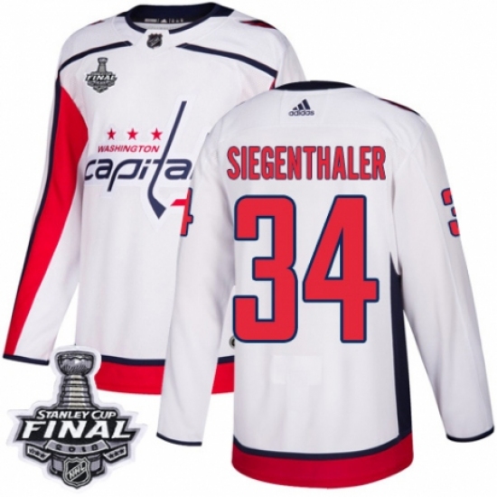 Men's Adidas Washington Capitals #34 Jonas Siegenthaler Authentic White Away 2018 Stanley Cup Final NHL Jersey