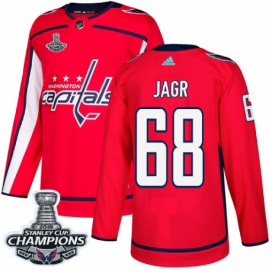 Men's Adidas Washington Capitals #68 Jaromir Jagr Authentic Red Home 2018 Stanley Cup Final Champions NHL Jersey