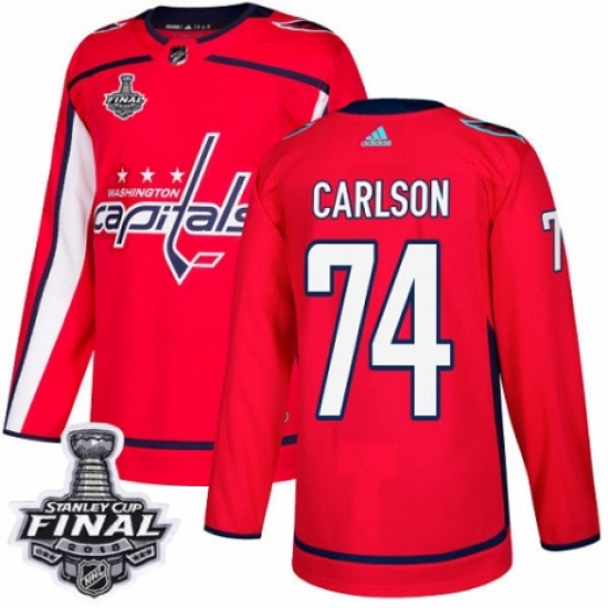 Men's Adidas Washington Capitals #74 John Carlson Premier Red Home 2018 Stanley Cup Final NHL Jersey