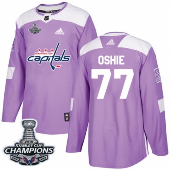 Men's Adidas Washington Capitals #77 T.J. Oshie Authentic Purple Fights Cancer Practice 2018 Stanley Cup Final Champions NHL Jersey
