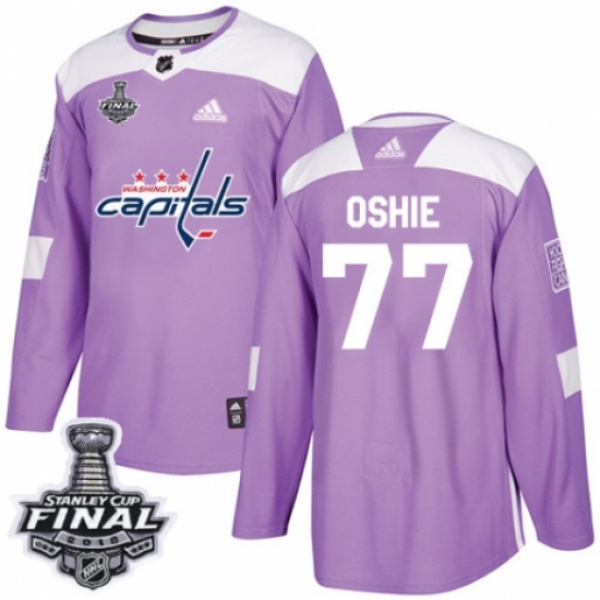 Men's Adidas Washington Capitals #77 T.J. Oshie Authentic Purple Fights Cancer Practice 2018 Stanley Cup Final NHL Jersey
