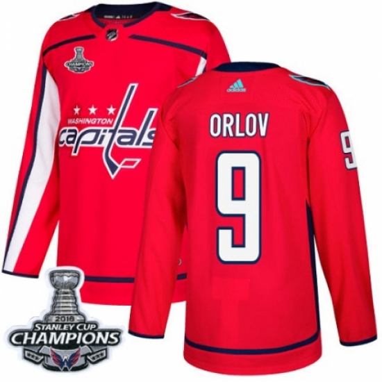 Men's Adidas Washington Capitals #9 Dmitry Orlov Premier Red Home 2018 Stanley Cup Final Champions NHL Jersey