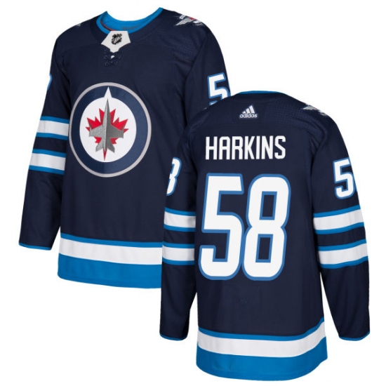 Home>NHL>Winnipeg Jets>Jansen Harkins>Men's Adidas Winnipeg Jets #58 Jansen Harkins Premier Navy Blue Home NHL Jersey