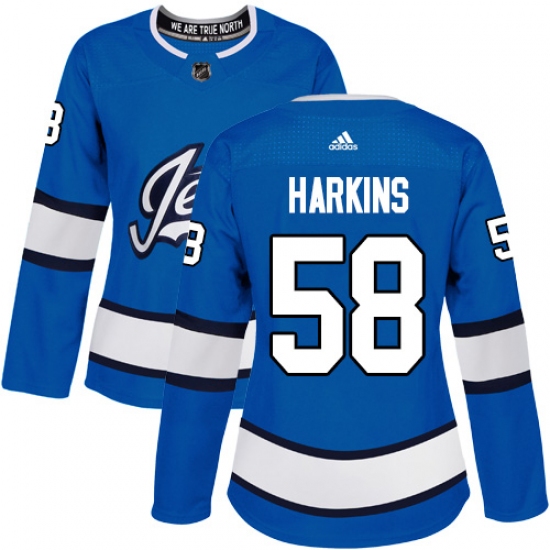 >Men's Adidas Winnipeg Jets #64 Logan Stanley Authentic Blue Alternate NHL Jersey