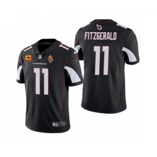 Men's Arizona Cardinals #11 Larry Fitzgerald Black With C Patch & Walter Payton Patch Limited Stitched Jersey
