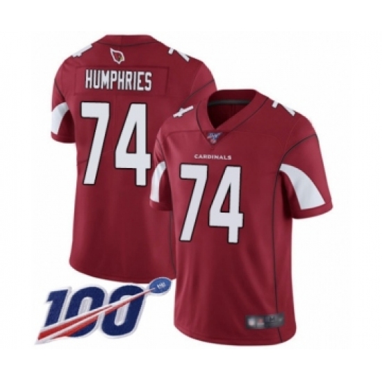 Men's Arizona Cardinals #74 D.J. Humphries Red Team Color Vapor Untouchable Limited Player 100th Season Football Jersey