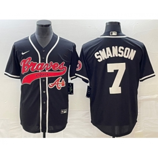 Men's Atlanta Braves #7 Dansby Swanson Black Cool Base Stitched Baseball Jersey