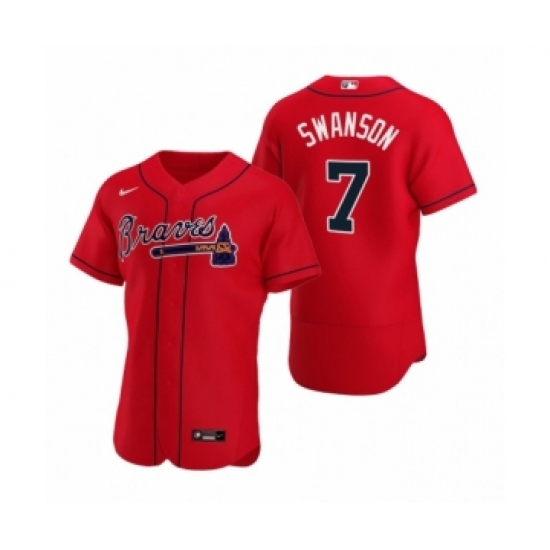 Men's Atlanta Braves #7 Dansby Swanson Nike Red 2020 Replica Alternate Jersey
