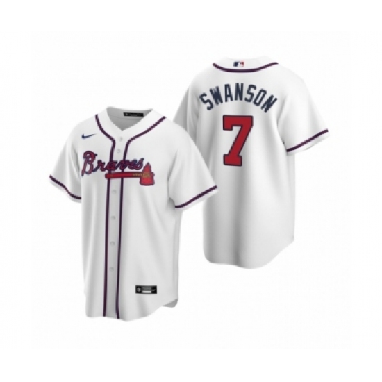Men's Atlanta Braves #7 Dansby Swanson Nike White 2020 Replica Home Jersey