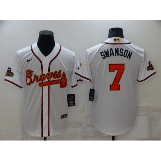 Men's Atlanta Braves #7 Dansby Swanson Nike White Authentic Golden Edition Jersey
