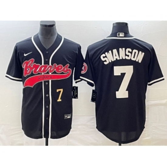 Men's Atlanta Braves #7 Dansby Swanson Number Black Cool Base Stitched Baseball Jersey