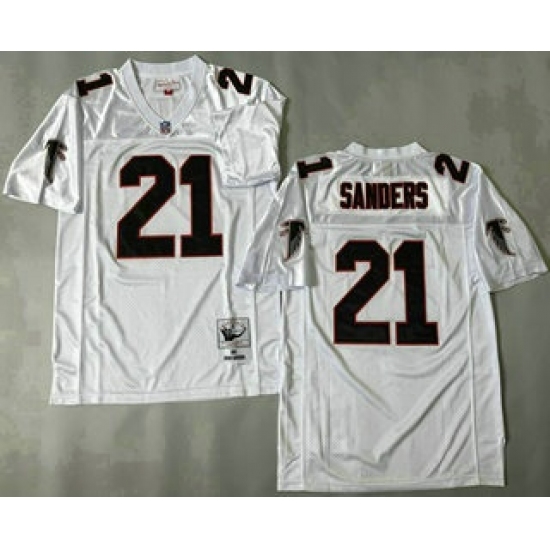 Men's Atlanta Falcons #21 Deion Sanders White 1992 Throwback Jersey