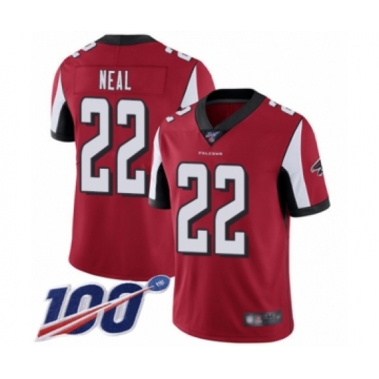 Men's Atlanta Falcons #22 Keanu Neal Red Team Color Vapor Untouchable Limited Player 100th Season Football Jersey