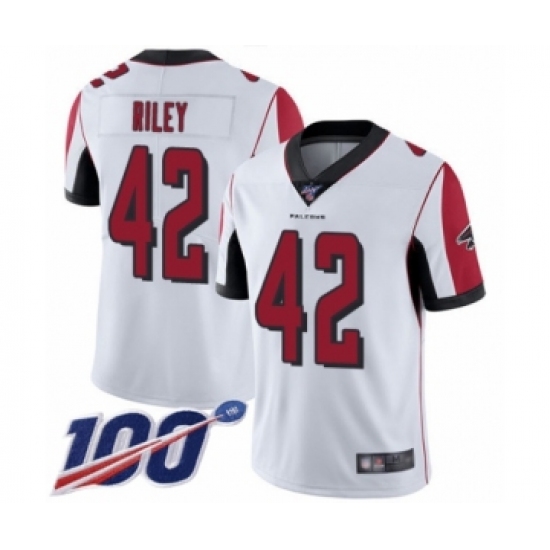 >Men's Atlanta Falcons #42 Duke Riley White Vapor Untouchable Limited Player 100th Season Football Jersey