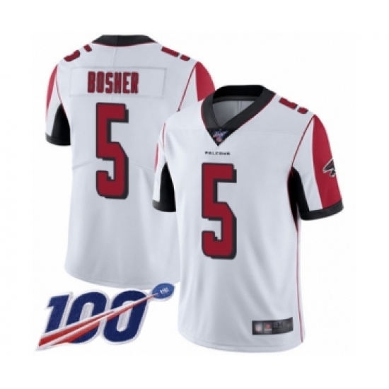 >Men's Atlanta Falcons #5 Matt Bosher White Vapor Untouchable Limited Player 100th Season Football Jersey