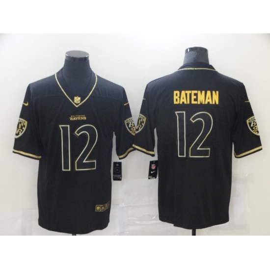 >Men's Baltimore Ravens #12 Rashod Bateman Nike Black Gold Throwback 2021 Leopard Jersey