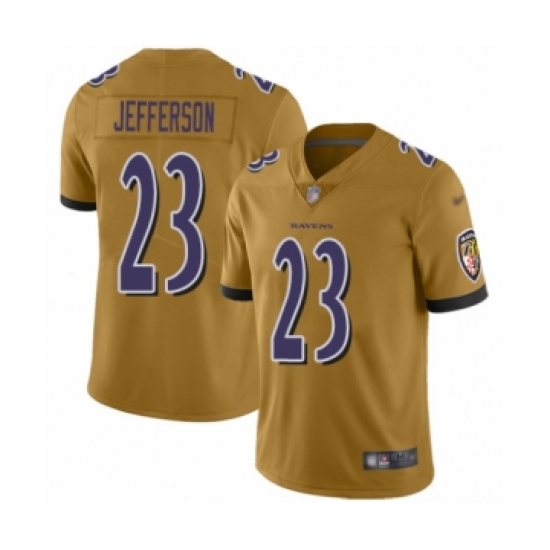 >Men's Baltimore Ravens #23 Tony Jefferson Limited Gold Inverted Legend Football Jersey