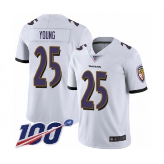 Men's Baltimore Ravens #25 Tavon Young White Vapor Untouchable Limited Player 100th Season Football Jersey