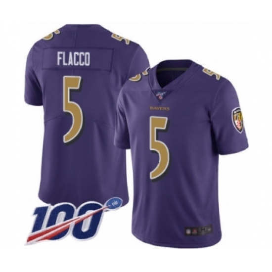 Men's Baltimore Ravens #5 Joe Flacco Limited Purple Rush Vapor Untouchable 100th Season Football Jersey