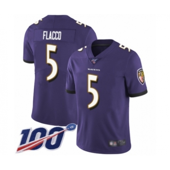 Men's Baltimore Ravens #5 Joe Flacco Purple Team Color Vapor Untouchable Limited Player 100th Season Football Jersey