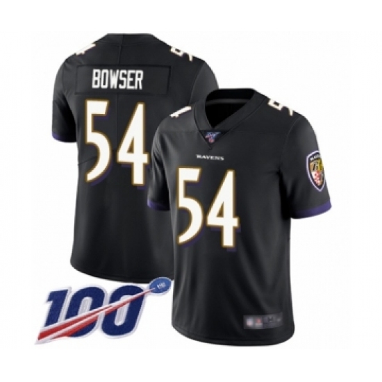 Men's Baltimore Ravens #54 Tyus Bowser Black Alternate Vapor Untouchable Limited Player 100th Season Football Jersey