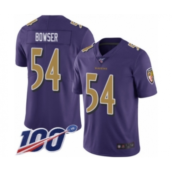 Men's Baltimore Ravens #54 Tyus Bowser Limited Purple Rush Vapor Untouchable 100th Season Football Jersey