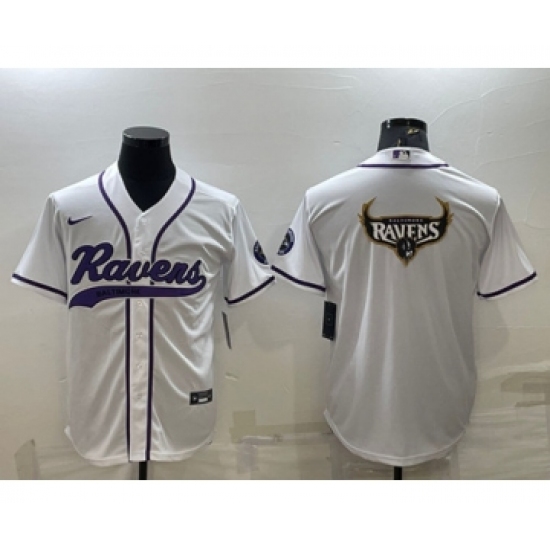 Men's Baltimore Ravens White Team Big Logo With Patch Cool Base Stitched Baseball Jersey