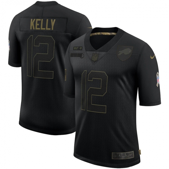 >Men's Buffalo Bills #12 Jim Kelly Black Nike 2020 Salute To Service Limited Jersey