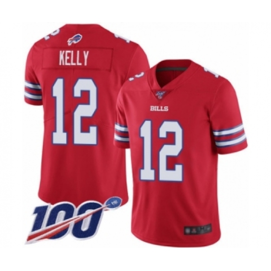 Men's Buffalo Bills #12 Jim Kelly Limited Red Rush Vapor Untouchable 100th Season Football Jersey