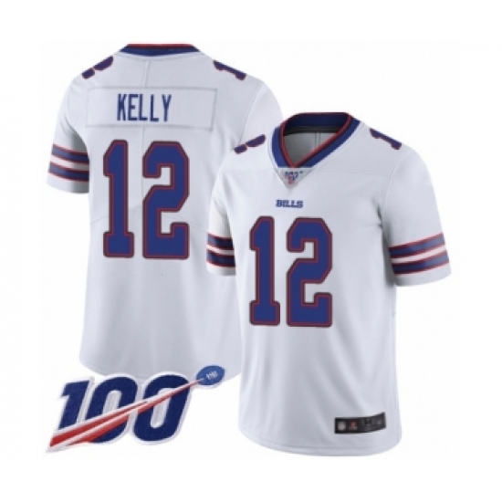 Men's Buffalo Bills #12 Jim Kelly White Vapor Untouchable Limited Player 100th Season Football Jersey