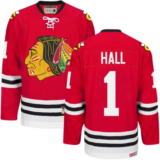 Men's CCM Chicago Blackhawks #1 Glenn Hall Authentic Red New Throwback NHL Jersey