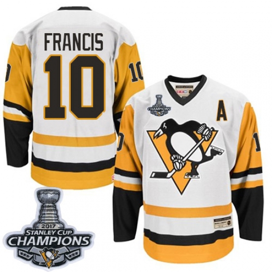 Men's CCM Pittsburgh Penguins #10 Ron Francis Premier White Throwback 2017 Stanley Cup Champions NHL Jersey