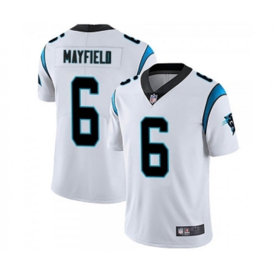 >Men's Carolina Panthers #6 Baker Mayfield White Vapor Untouchable Limited Stitched Jersey