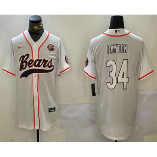 >Men's Chicago Bears #34 Walter Payton White Throwback With Cool Base Stitched Baseball Jersey