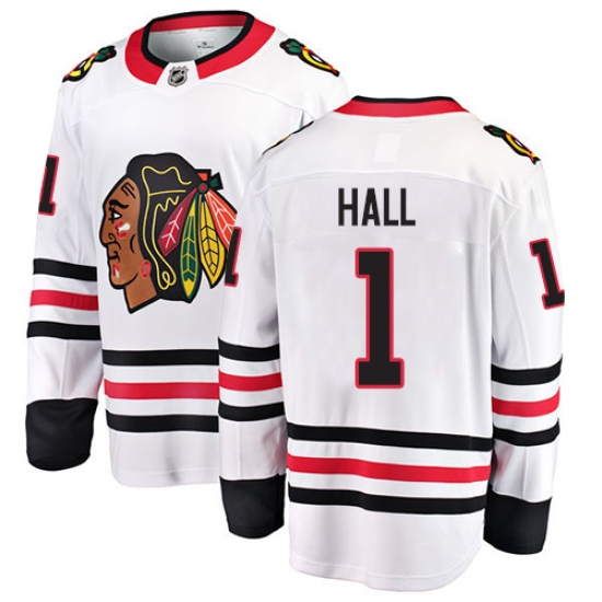 Men's Chicago Blackhawks #1 Glenn Hall Fanatics Branded White Away Breakaway NHL Jersey