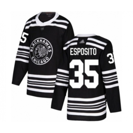 Men's Adidas Chicago Blackhawks #35 Tony Esposito Authentic Black 2019 Winter Classic NHL Jersey