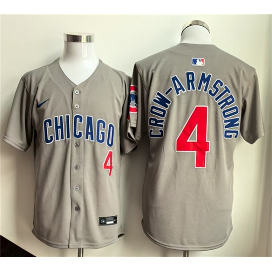 >Men's Chicago Cubs #4 Pete Crow-Armstrong Gray Limited Stitched Baseball Jersey